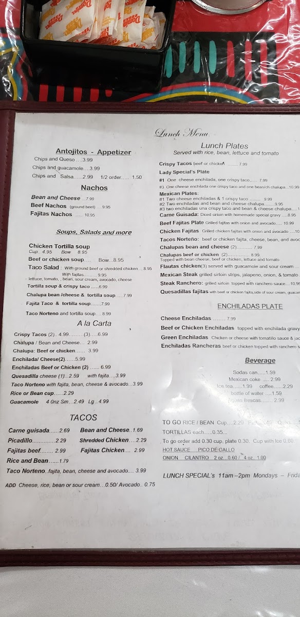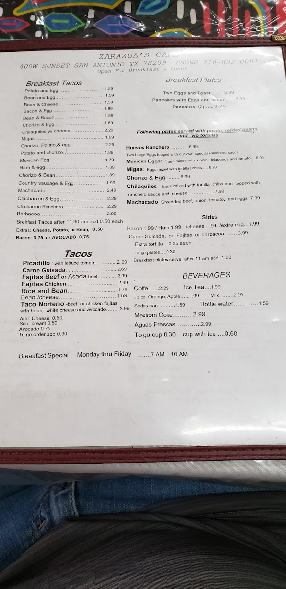 Zarazua's Cafe Menu